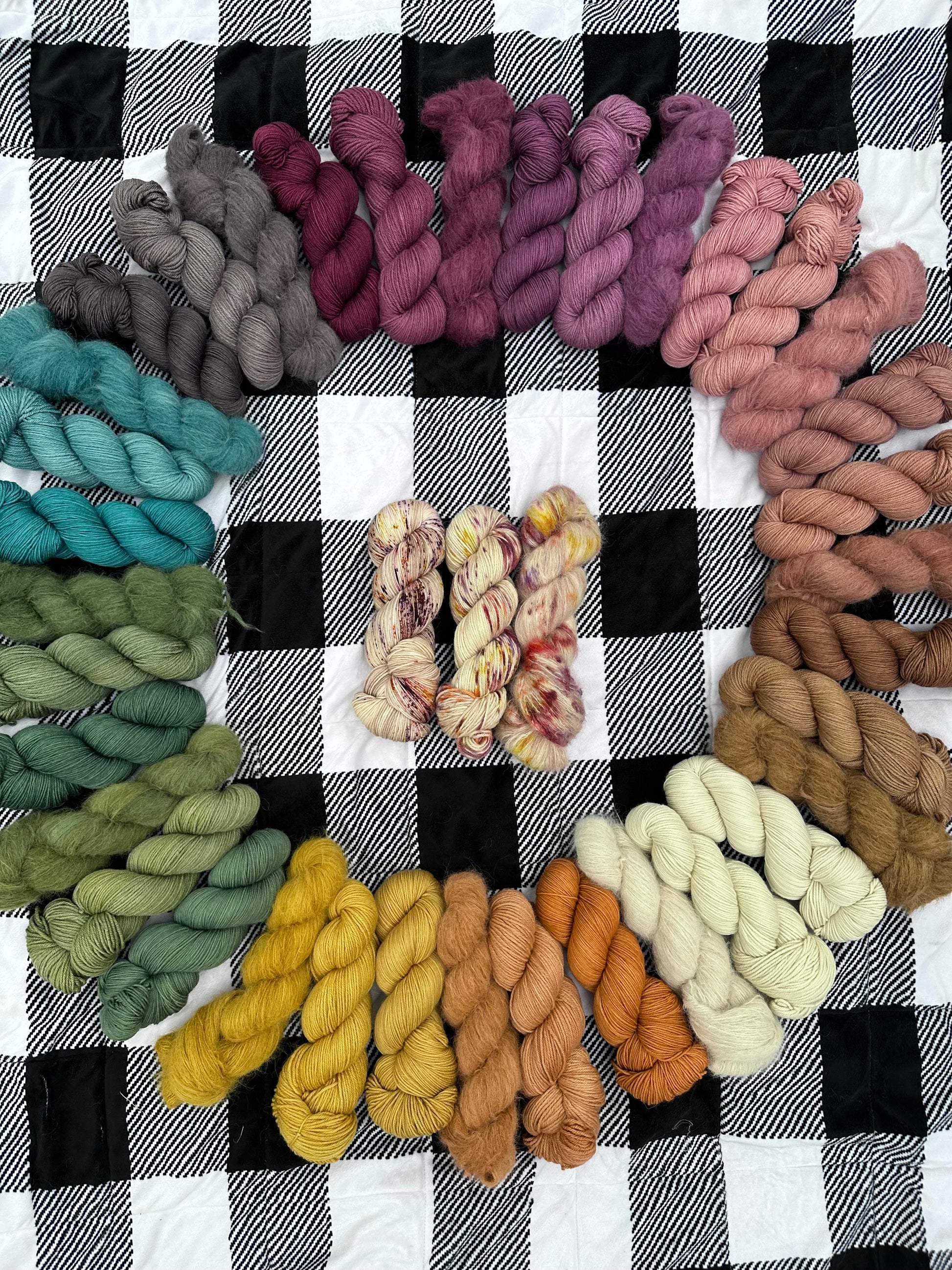 Each listing is for a single skein of yarn. Base information can be found at the “Bases” tab. Fibers come in 4 oz braids.